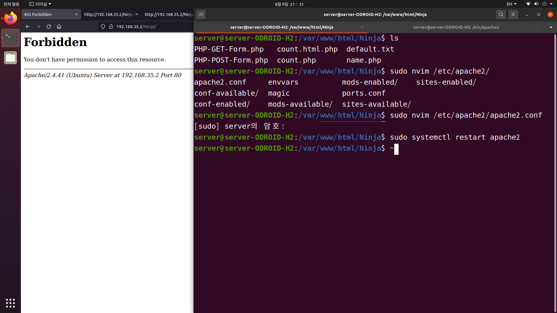 | apache2 웹 서버 private directory 만들기 (0) | 2021.08.09 |