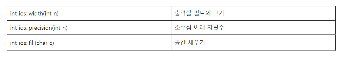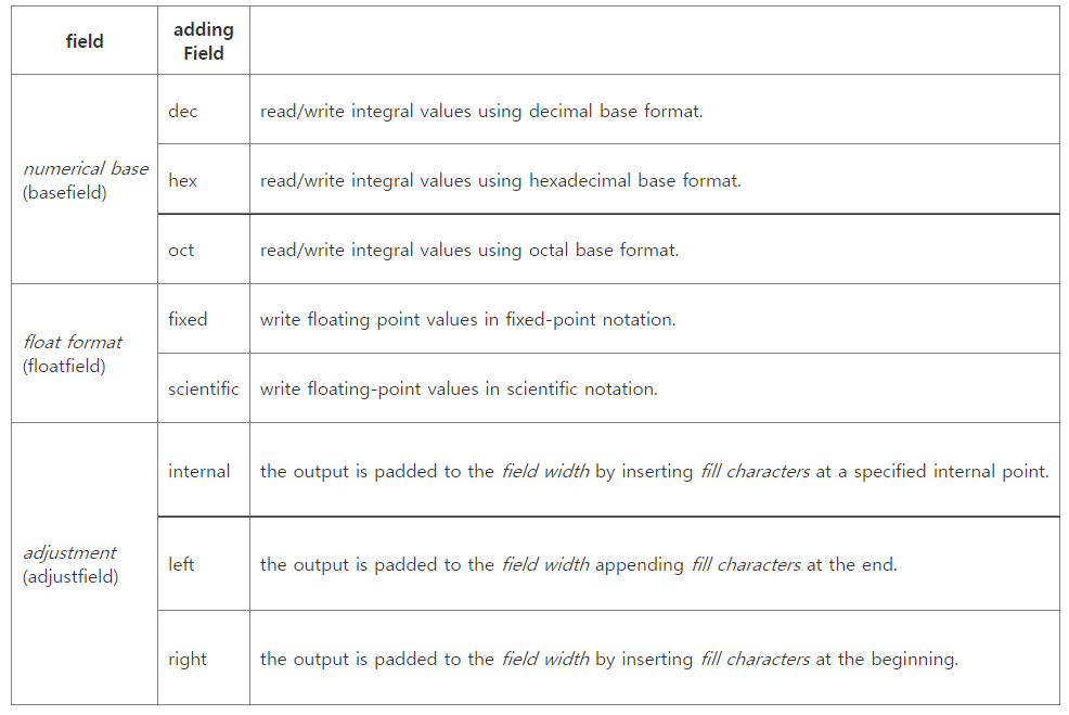 fmtField ios::setf (addingField, field); // 지정할 필드를 설정