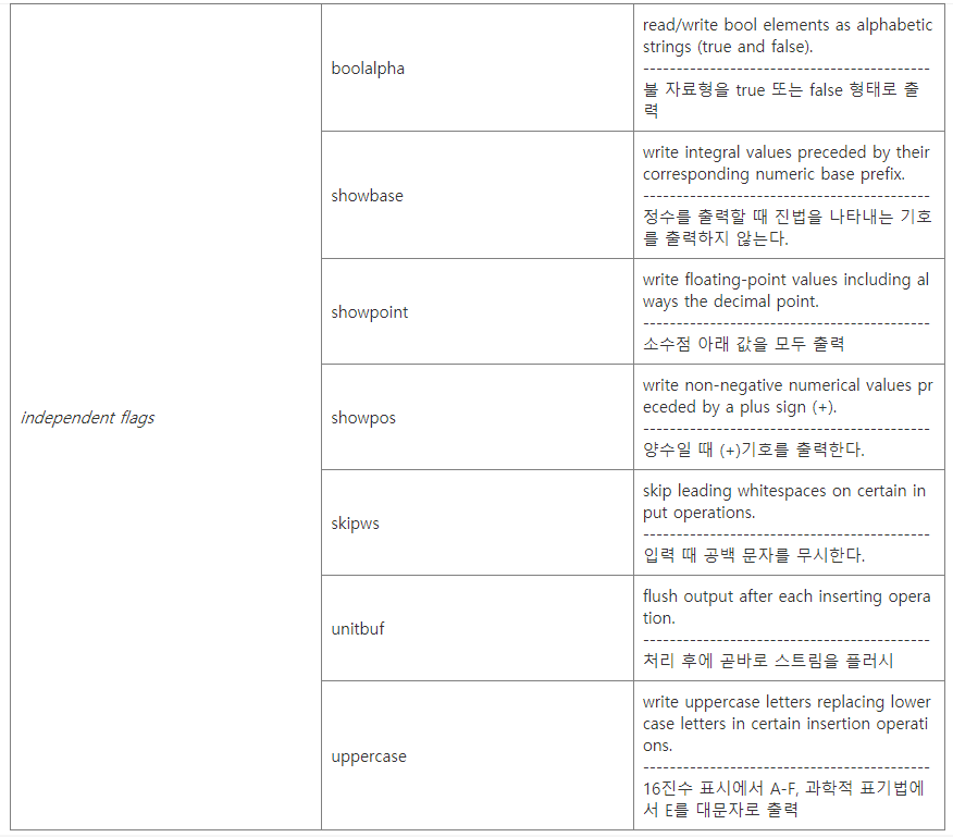 fmtflags ios::unsetf (flag); // 플래그를 해제