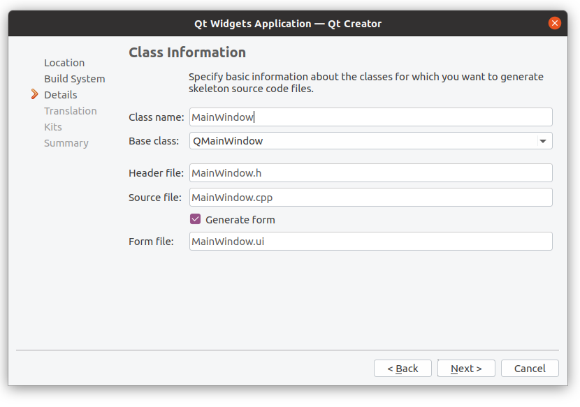 (4) MainWindow.h / MainWindow.cpp contain the default GUI generated by wizard