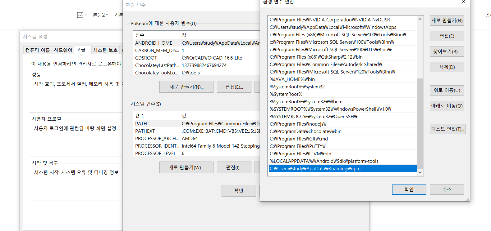 %USERPROFILE%\AppData\Roaming\npm 환경변수 추가